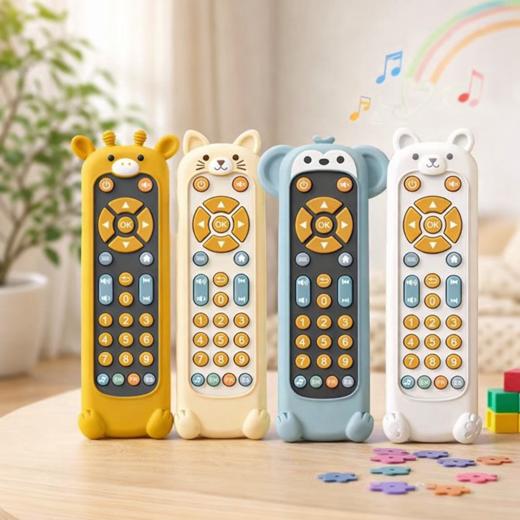 • Jouet Télécommandé pour Bébé TV avec Musique, Lumières et Jeu Sensoriel